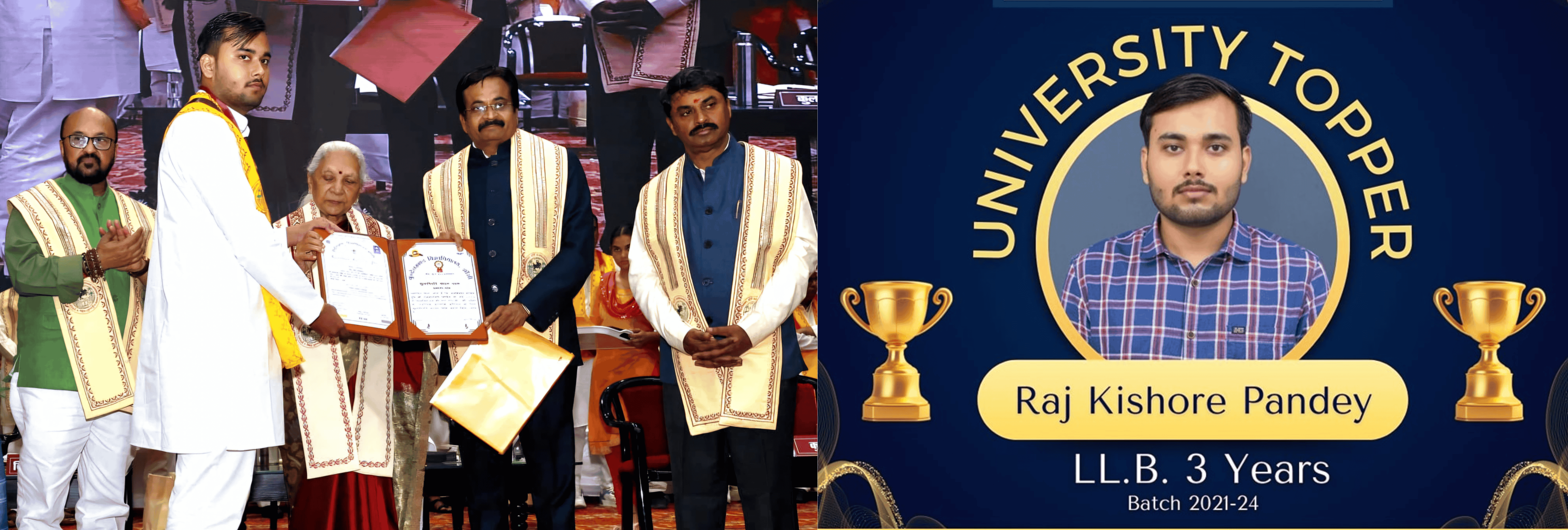 Hon. Governor of Uttar Pradesh, Smt. Anandi Ben Patel bestows the Gold Medal and Degree upon Raj Kishor Pandey, University's top-ranking Law Graduate.